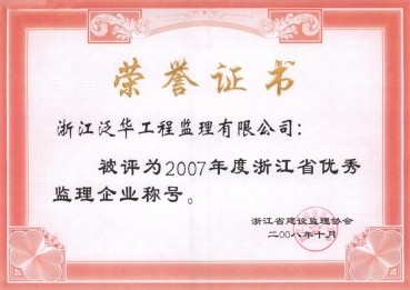 2007年度浙江省優(yōu)秀監(jiān)理企業(yè)